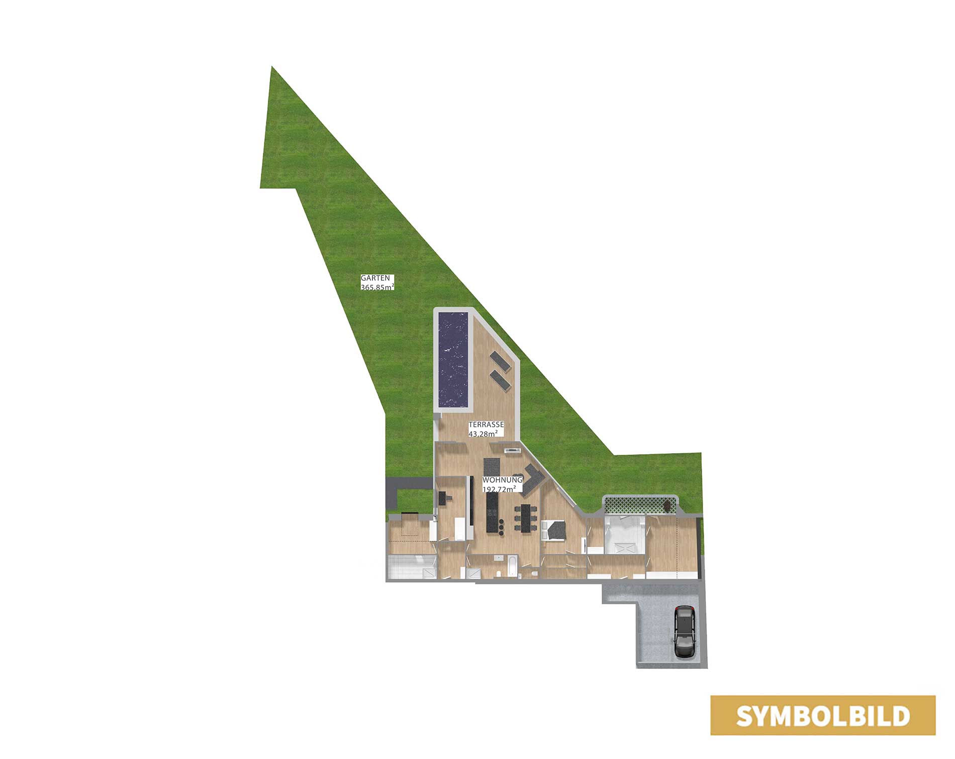 In den Gartenwohnungen besteht die Möglichkeit, private Pools zu errichten – die Genehmigung durch die Gemeinde liegt bereits vor.